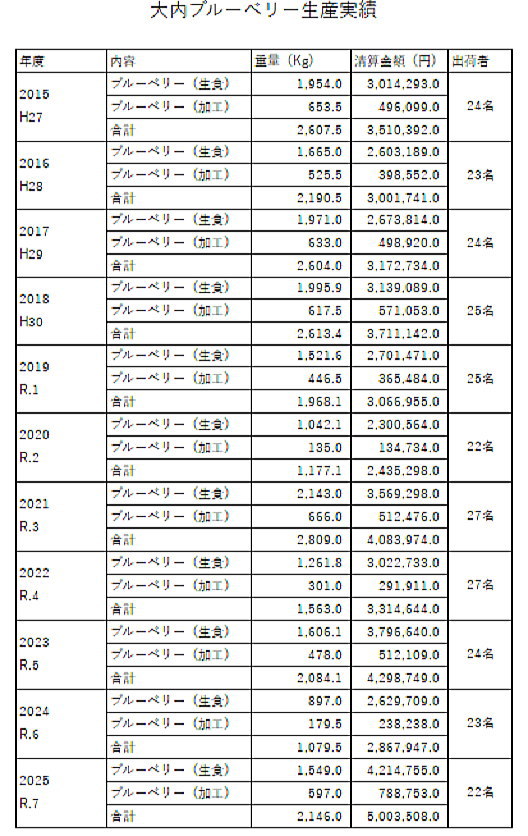 「大内をブルーベリーの里にする」を掲げ、これまで認知啓蒙活動に取り組んで参りました。